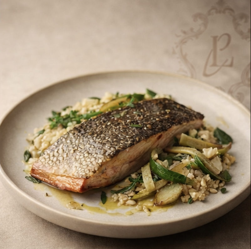 Fenouil rôti, riz complet bio et herbes de potager